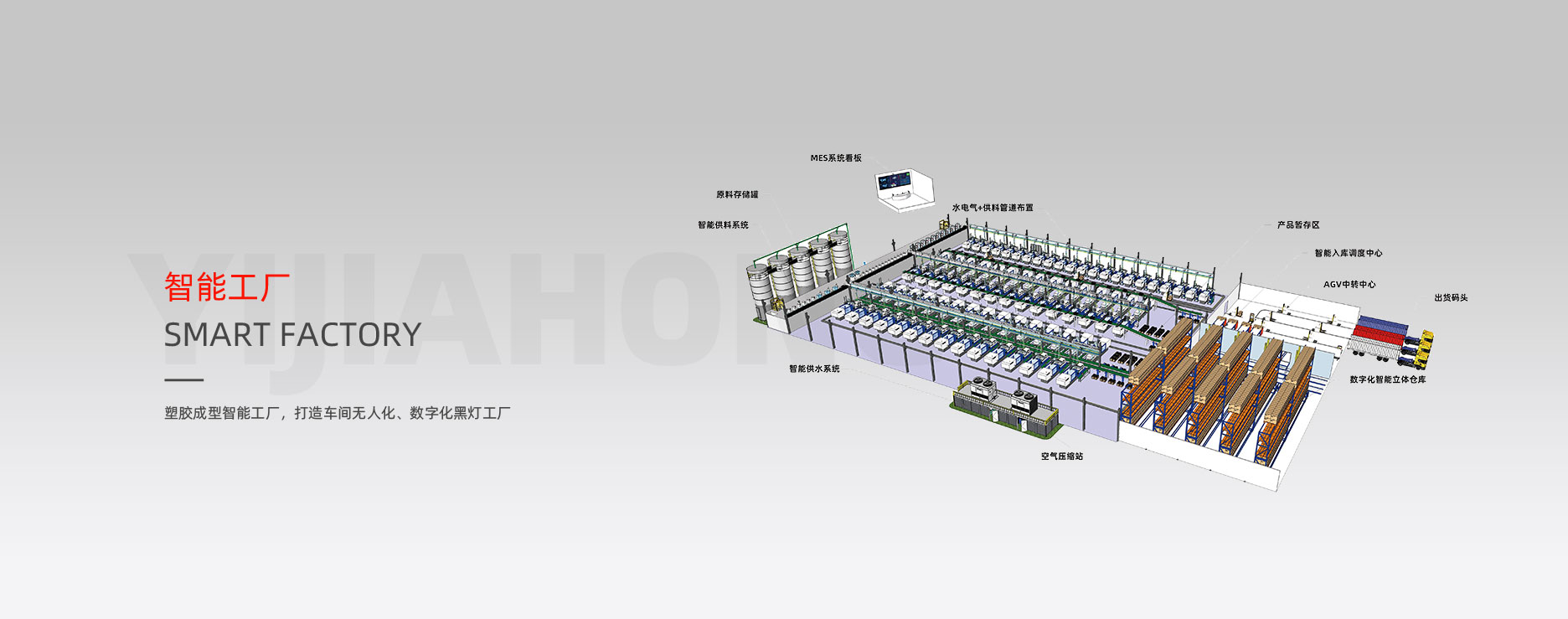 亿嘉宏(宁波)智能科技有限公司初创于2012年,坐落于浙江省余姚市,是一家专注于智能工厂整体规划设计、智能水电气系统、中央供料系统、除湿干燥系统,模具控温系统,拌料混合系统及粉碎回收系统、塑料辅机等设备销售及安装服务的企业,具有专业的建筑业企业资质证书与安全生产许可证,为客户提供一站式服务。公司拥有专业技术服务团队、研发团队、运营团队,通过持续的创新和不断的技术进步,积极为客户提供注塑车间整套方案,并为推动行业发展做出贡献。